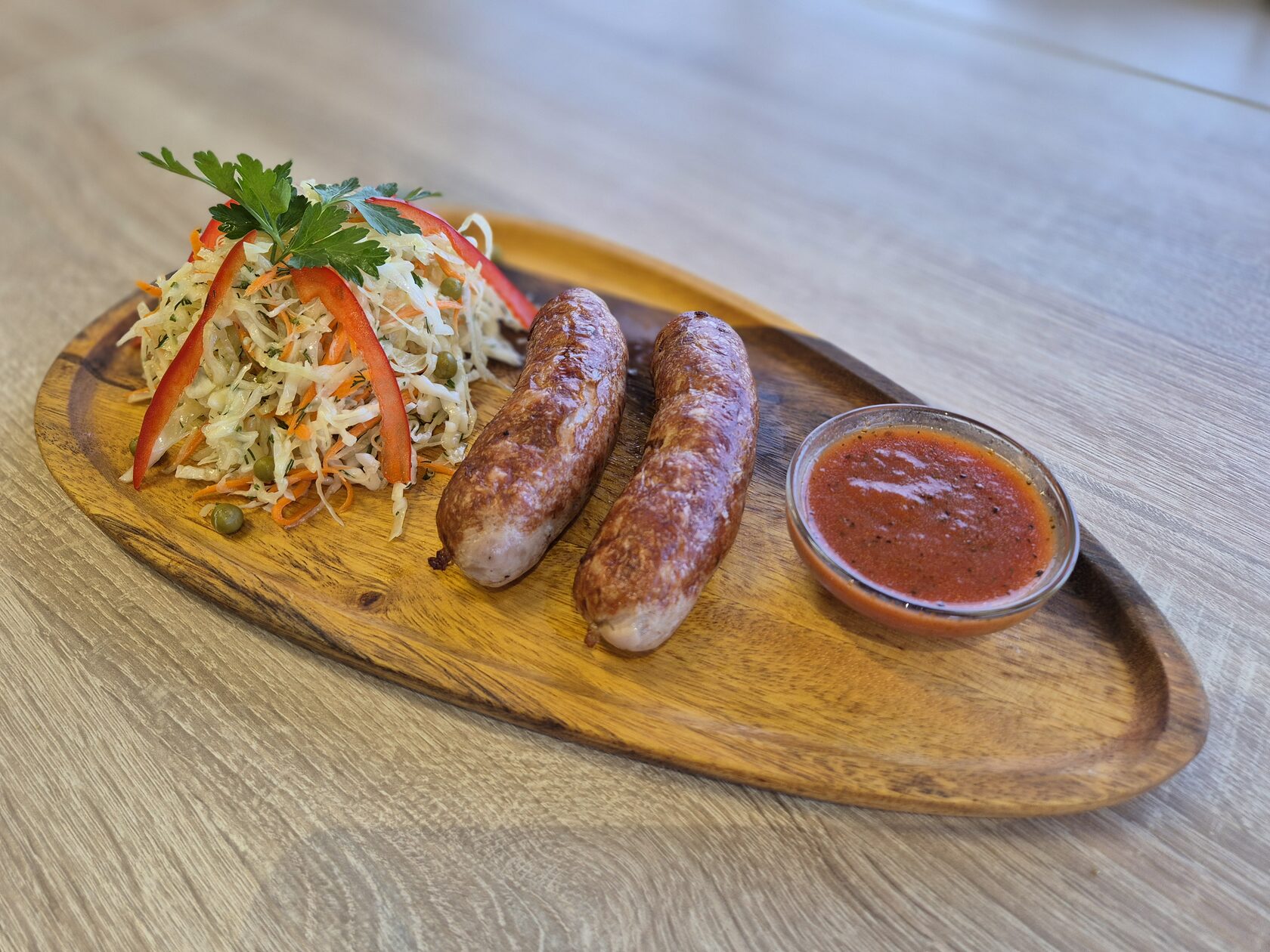 Cârnăciori la grătar cu salată din varză și sos 1/200/150/50 ................................................................................................