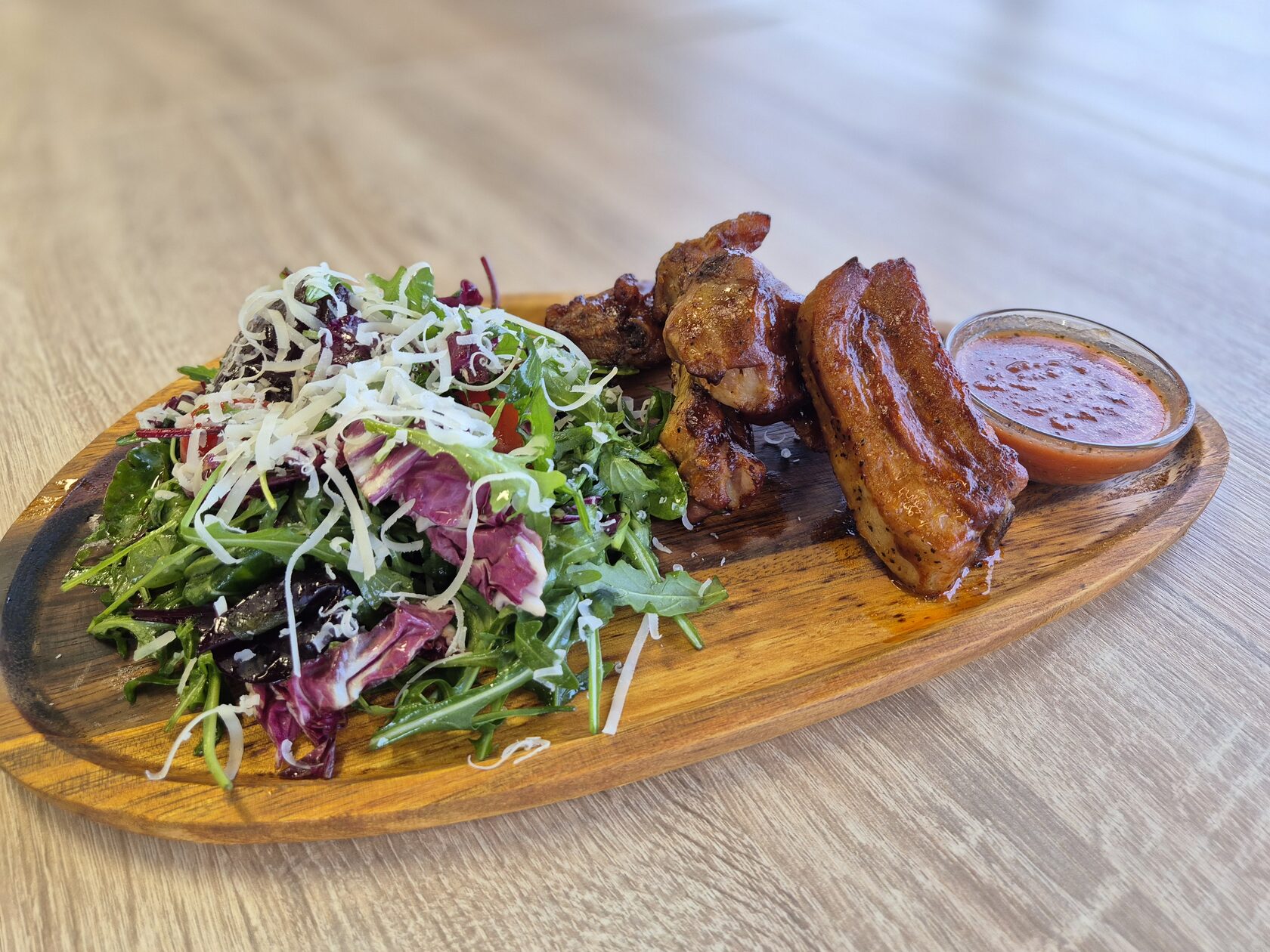 Costiță de porc BBQ cu mix de salată și roșii cherry